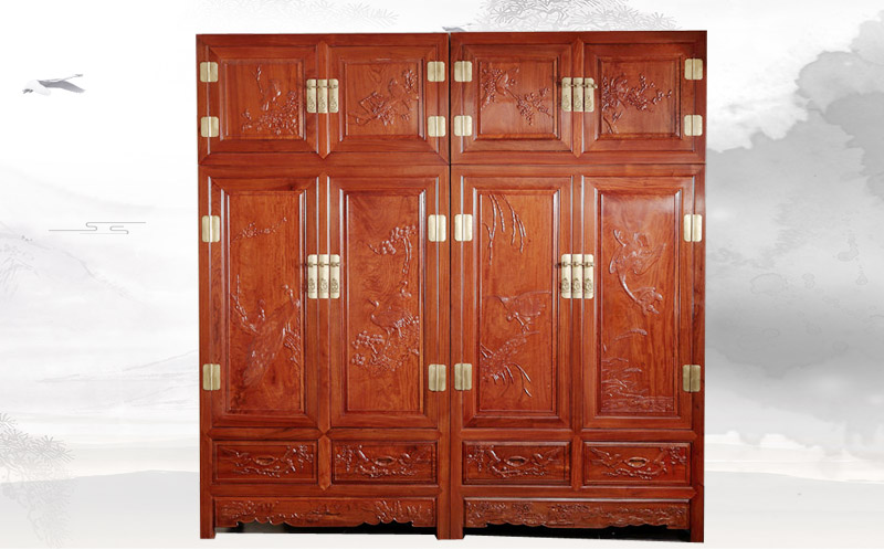 檀雕花鸟顶箱柜